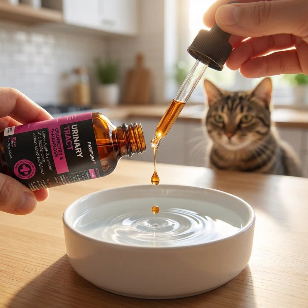 Just a few gentle drops added to your cat’s water to support urinary comfort, bladder health, and everyday happiness.